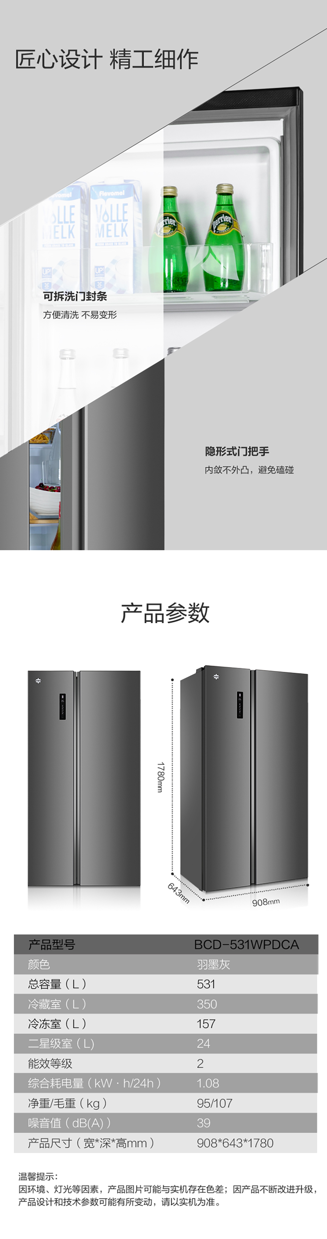 搭載-33℃深凍鎖鮮科技,肉汁飽滿更長久。采用離子長效抗菌凈味,抗菌率高達99.9%。風(fēng)冷無霜,拒絕風(fēng)干,食材水潤新鮮。